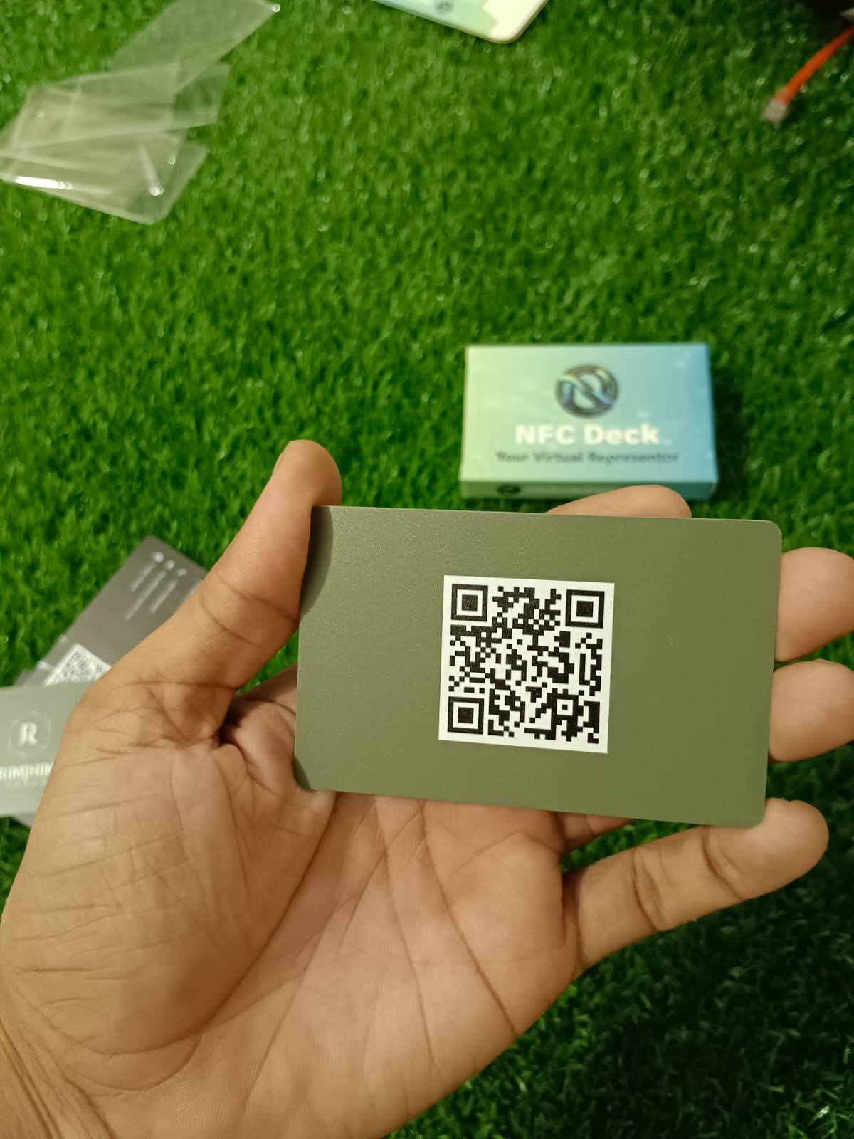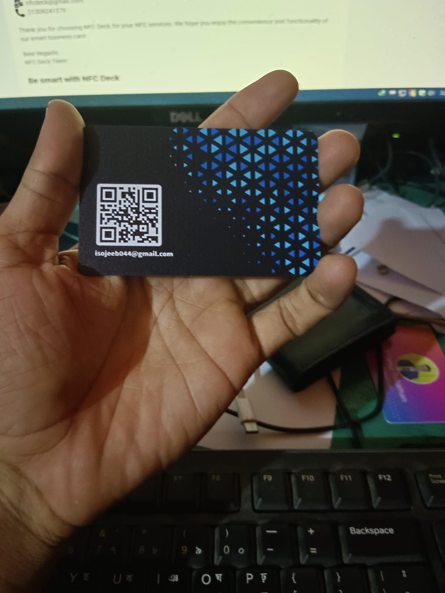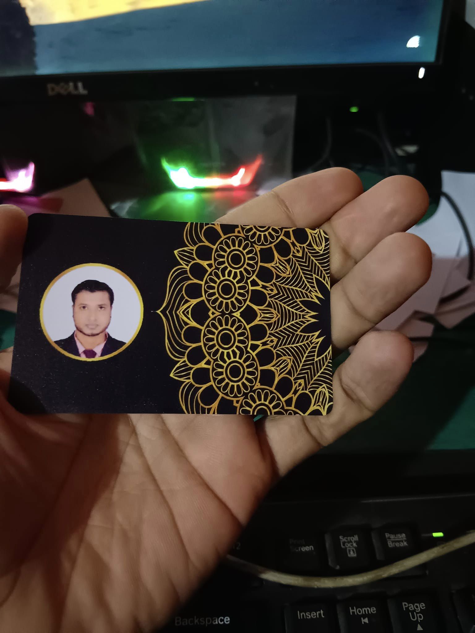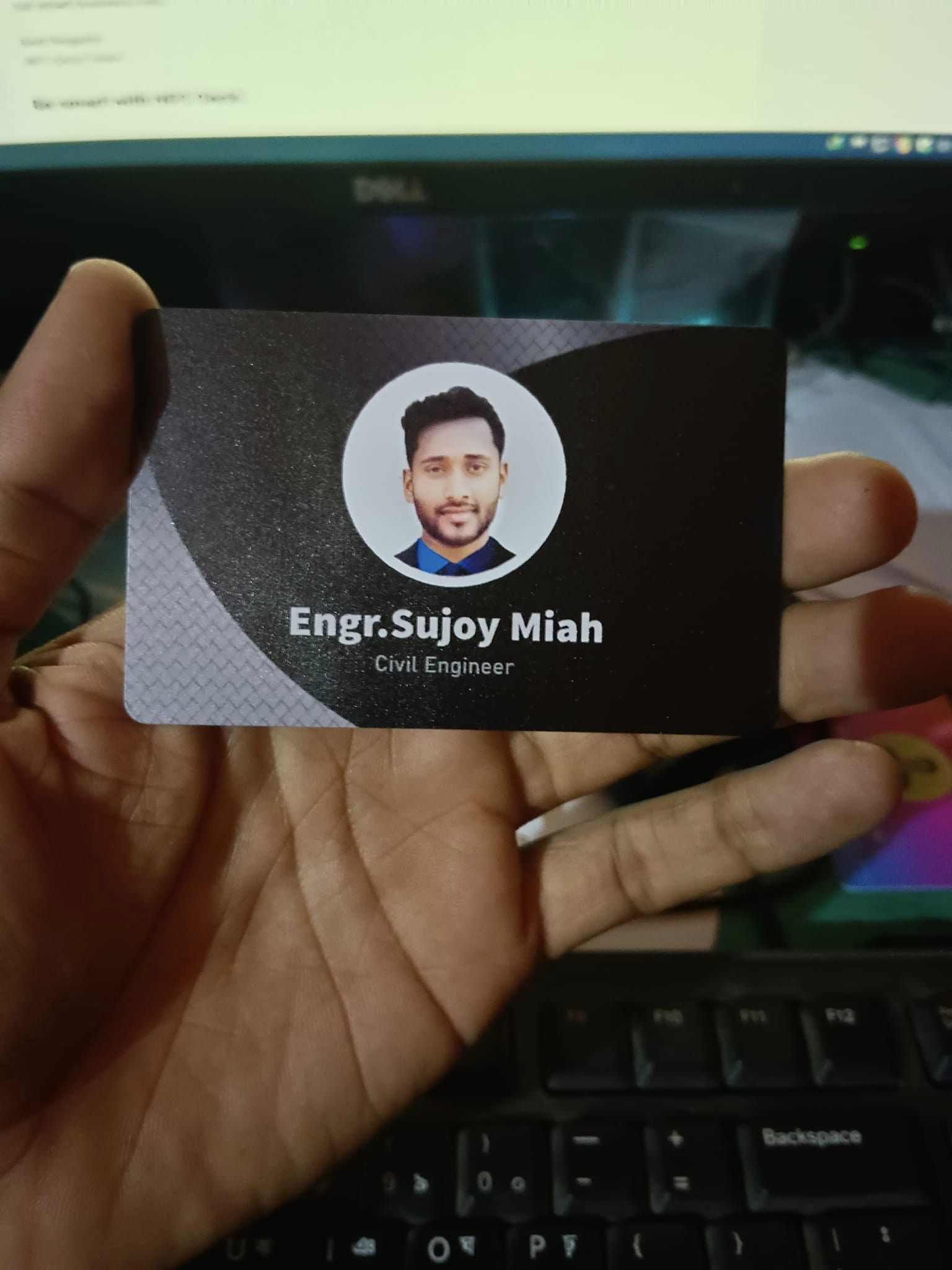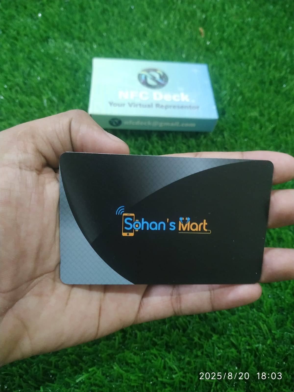 Printed NFC smart business card photos from Bangladesh with NFC tap and Dynamic QR, waterproof PVC, editable digital profiles—real prints and customer shots by NFC Deck.