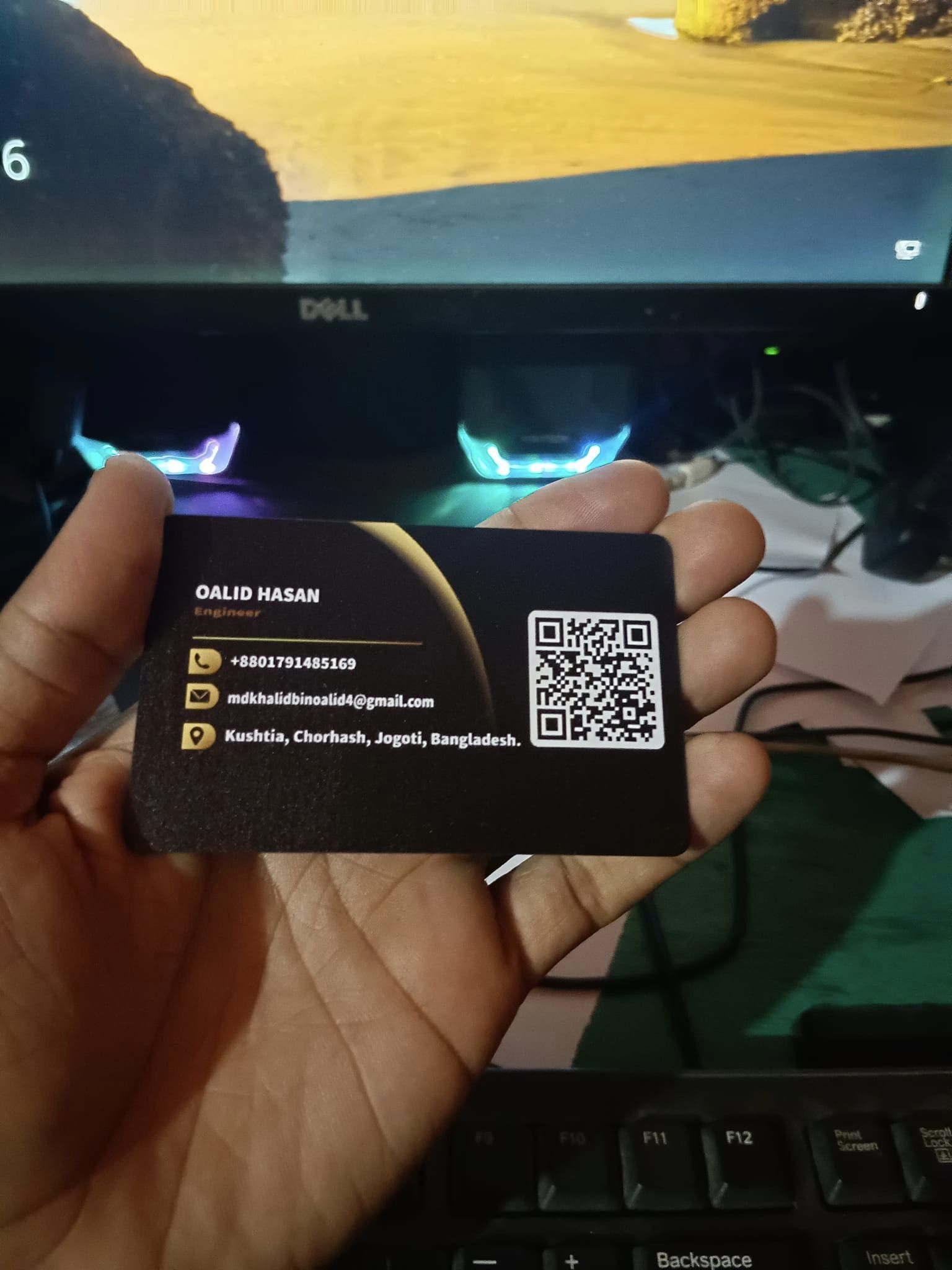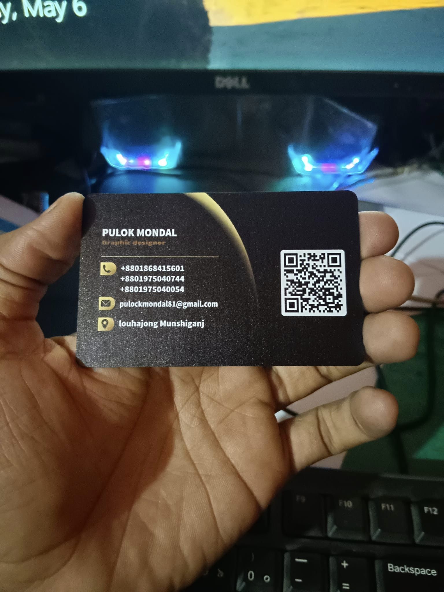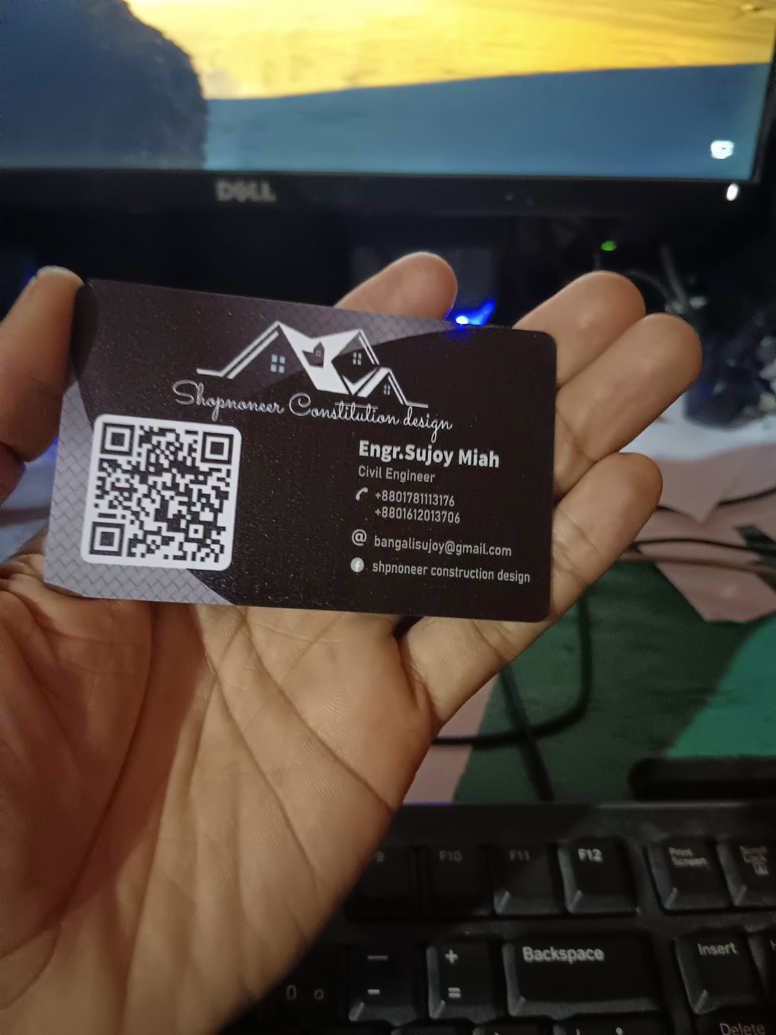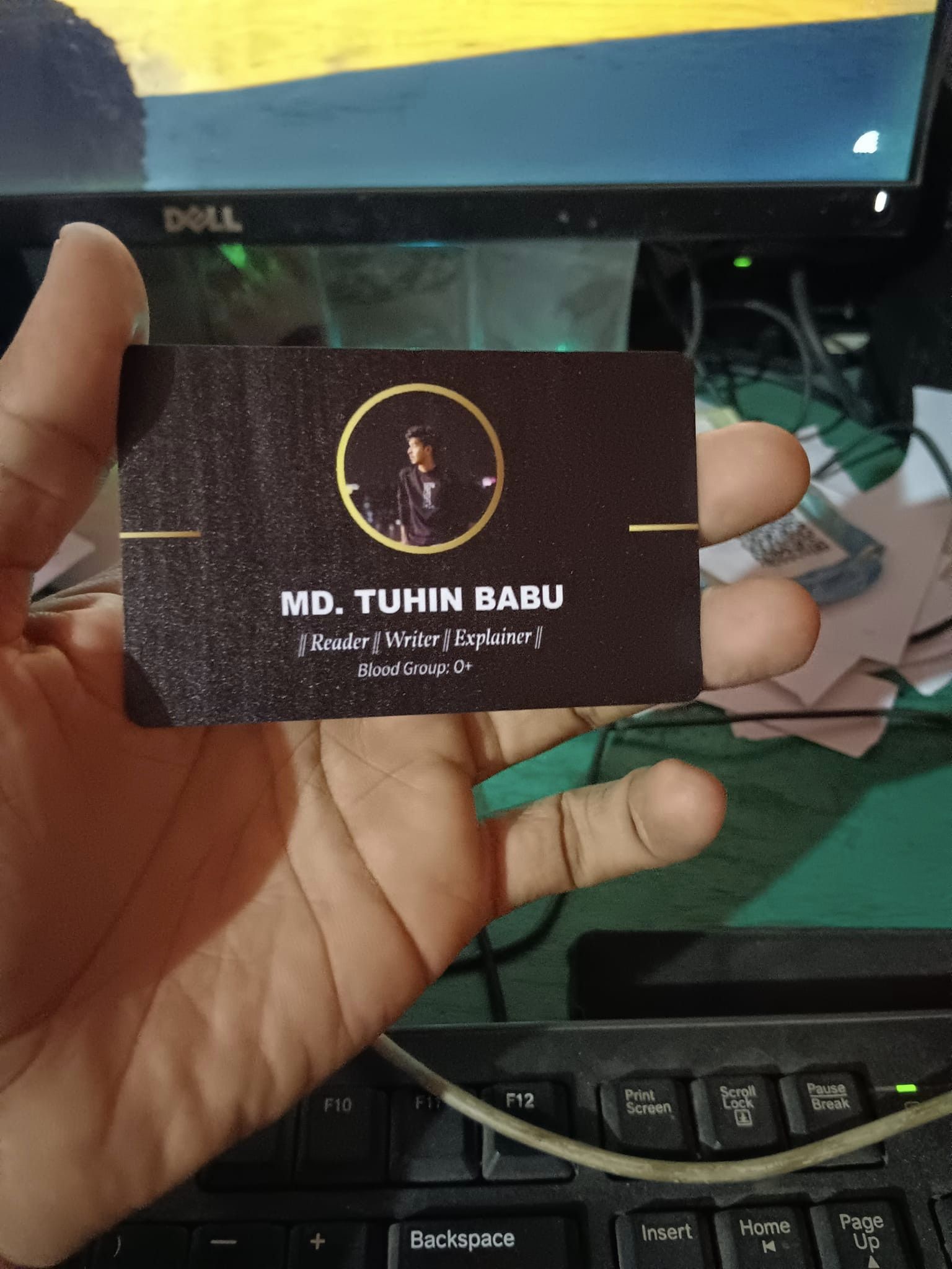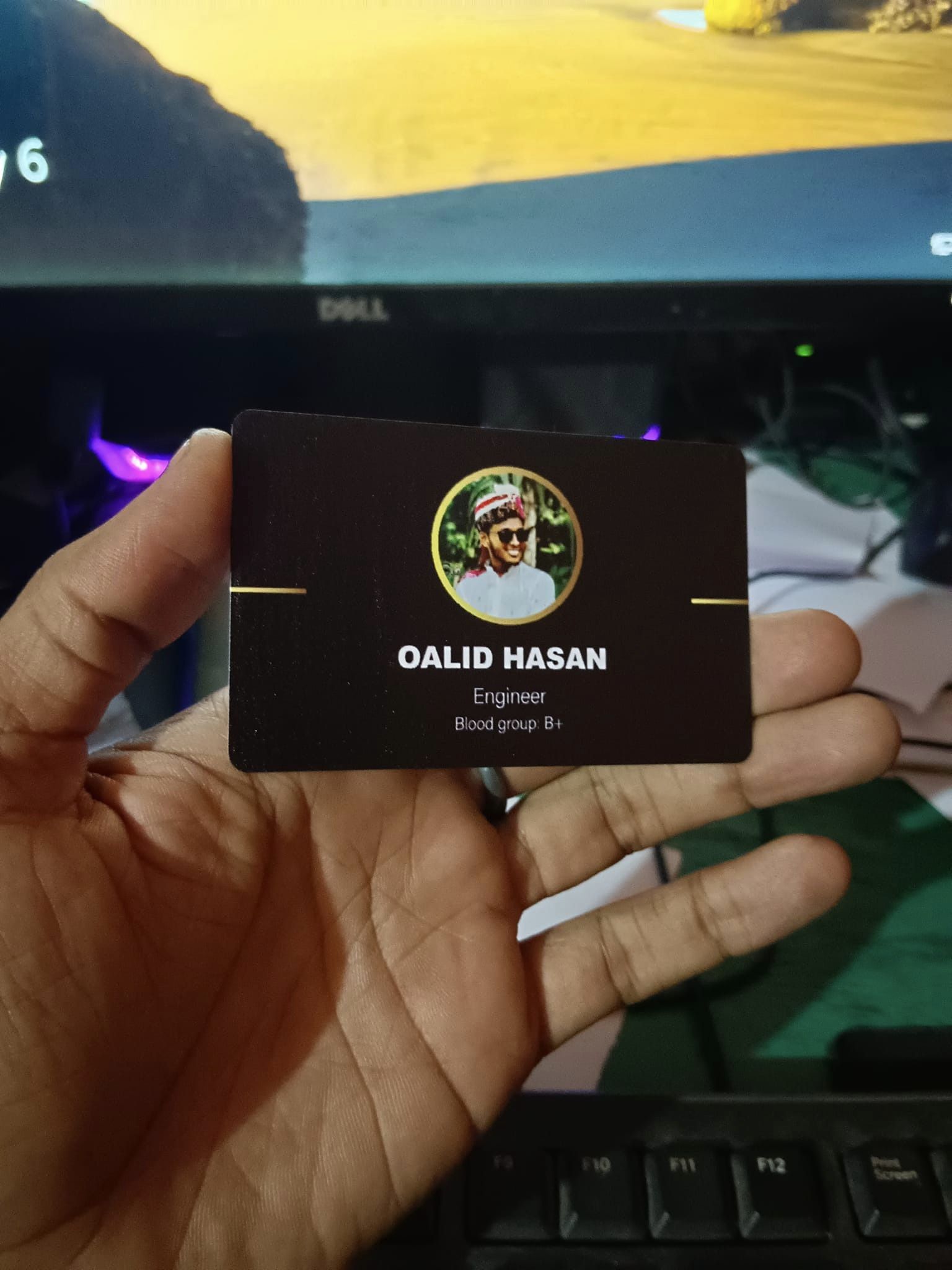 Printed NFC smart business card photos from Bangladesh with NFC tap and Dynamic QR, waterproof PVC, editable digital profiles—real prints and customer shots by NFC Deck.